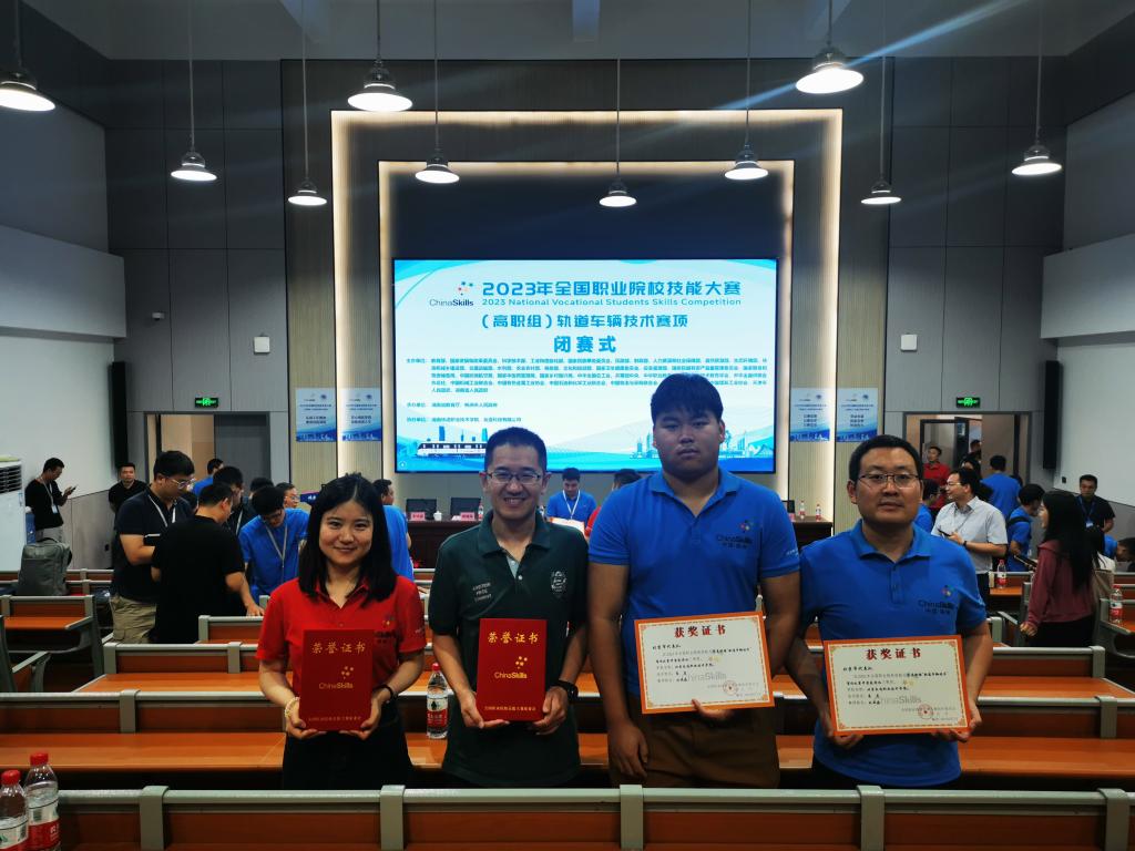 “捷报!”轨道交通系城市轨道车辆应用技术专业获得全国技能大赛三等奖!2023年8月27日,全国职业院校技能大赛在湖南铁道职业技术学院圆满落幕,在紧张的赛程过后,我系教师刘亚磊、学生高岩获得国赛团体三等奖。
