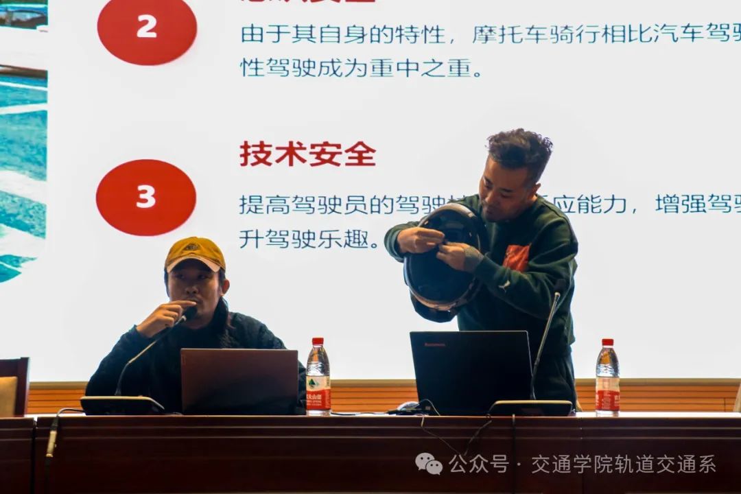 为进一步强化学生交通安全意识,切实提升学生的自我保护能力,轨道交通系于2024 年 11 月 28 日 14:00,在报告厅举行了“摩托车安全驾驶”交通安全讲座。北京石碳纪梁杨老师、门红昌老师、郝振华老师、轨道交通系全体班主任出席会议。