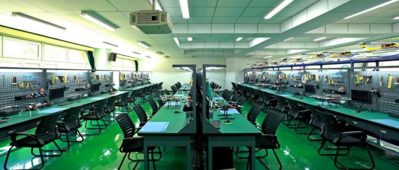 无人机专业配备有校内实训室与校外企业实训基地,校内实训室包括无人机原理实训室与无人机系统工程师实训中心,拥有多种无人机设备,设有VR模拟系统,拥有多功能实训台24个,无人机室内测试飞行场地80平米,并配备了60多架可拆装教学无人机。可以进行无人机飞行操作和拆装训练等课程。此外,该实训室还兼具校内创客空间的职能,为科研平台、学生实训和创业创新平台、技能竞赛、技能培训以及技能服务与创新研发提供场所。