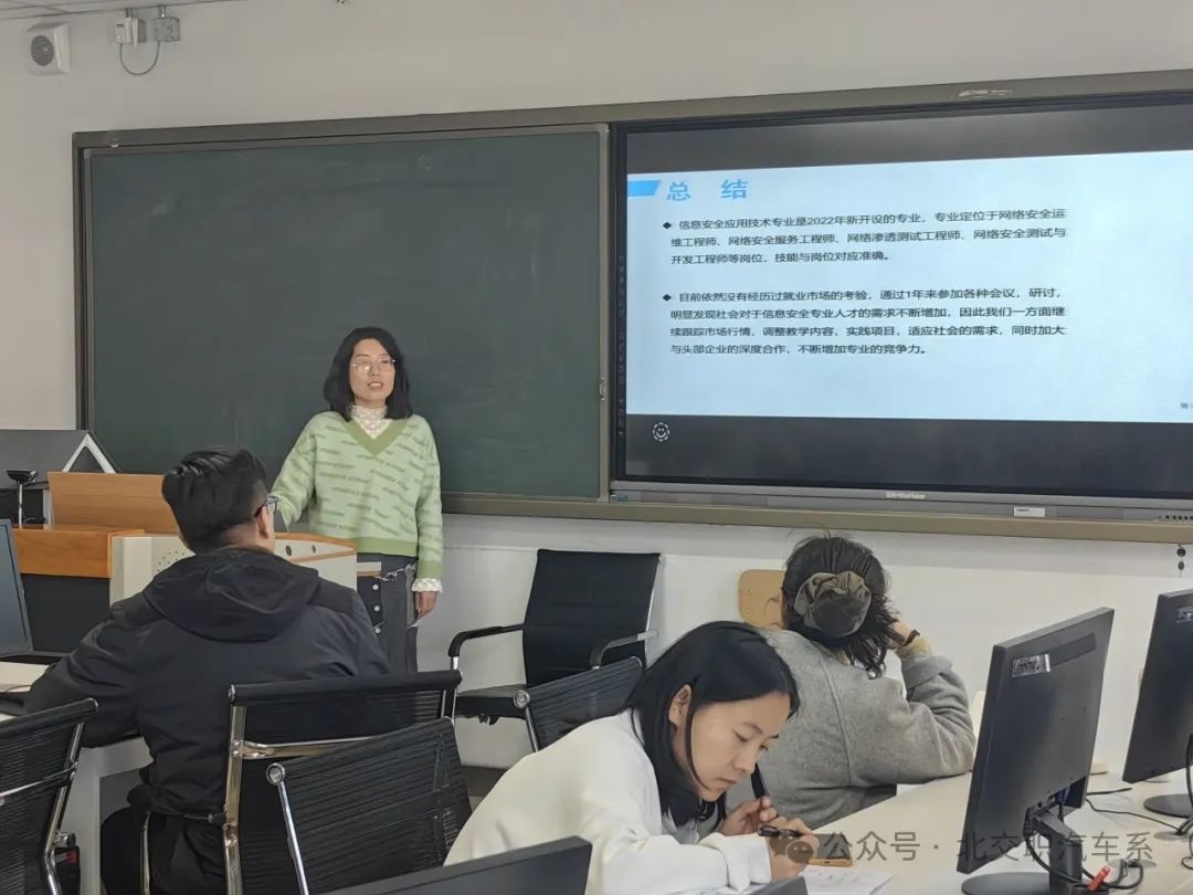为增强系内专业交流,汽车系于2024年3月14日下午1点30分在教一楼308实训室开展汽车系专业拓展交流系列教研会——信息安全专业介绍。汽车系全体教师参会,信息安全专业教师宋静主持会议。