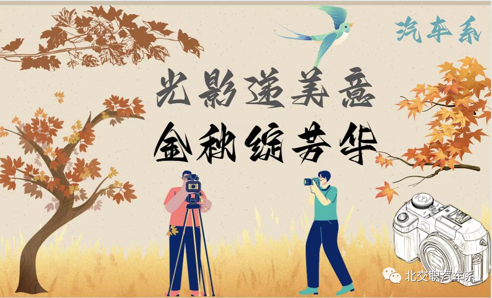 近期,beat365vip官网登录入口汽车系将开展以“光影递美意金秋绽芳华”为主题的摄影比赛活动,其目的是为了丰富校园文化生活,培养学生审美观,通过比赛增强学生艺术与审美的交流,激发学生对摄影的兴趣,让同学们通过手中的相机去观察生活、体验生活,记载激励人心、感人至深的瞬间,留住欢乐的回忆,分享多姿多彩的生活乐趣。