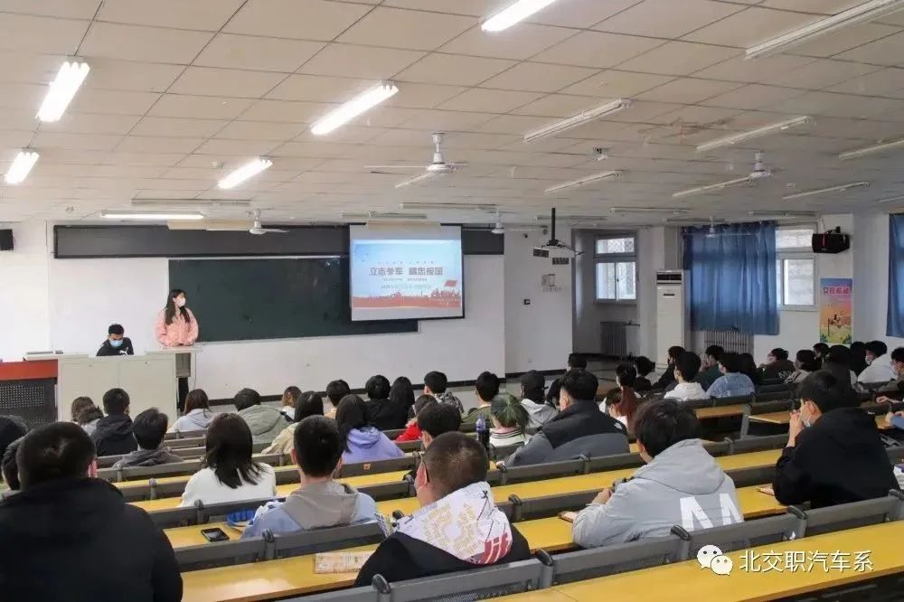 为积极贯彻习近平总书记关于中国特色社会主义新时代强军指导思想的精神,激励分校同学响应祖国召唤、献身国防大业。我系于3月14日下午隆重举行了一场特别的活动——征兵宣传大会。征兵是国家的重要政策,是保卫祖国安全的必要措施,汽车系积极响应国家号召,鼓励更多的优秀青年报效国家。