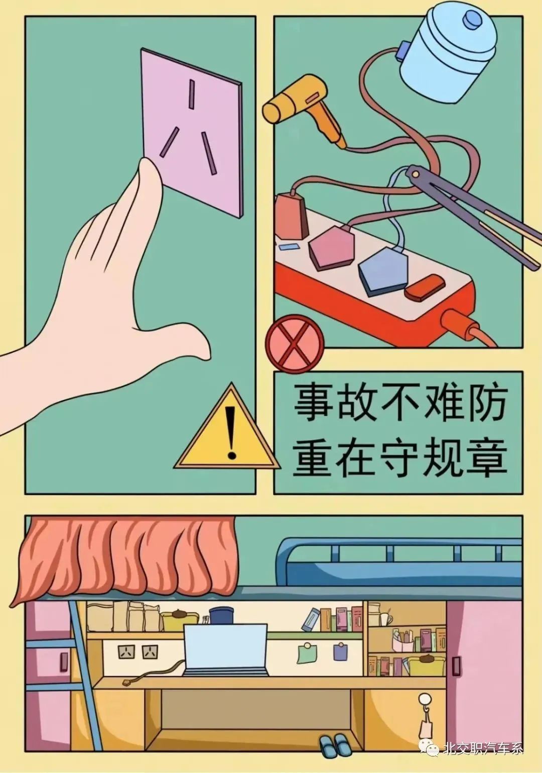 不在宿舍内使用电炉、热得快等大功率电器,不把电子类产品放在床上充电