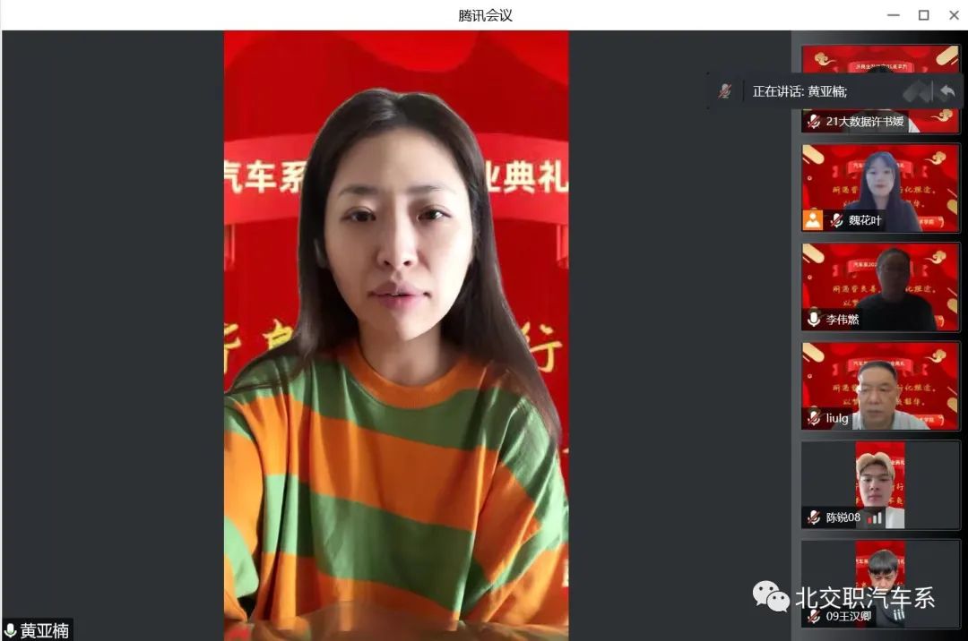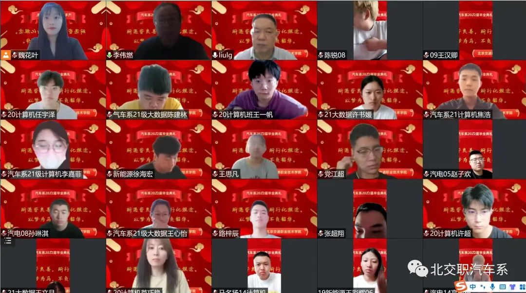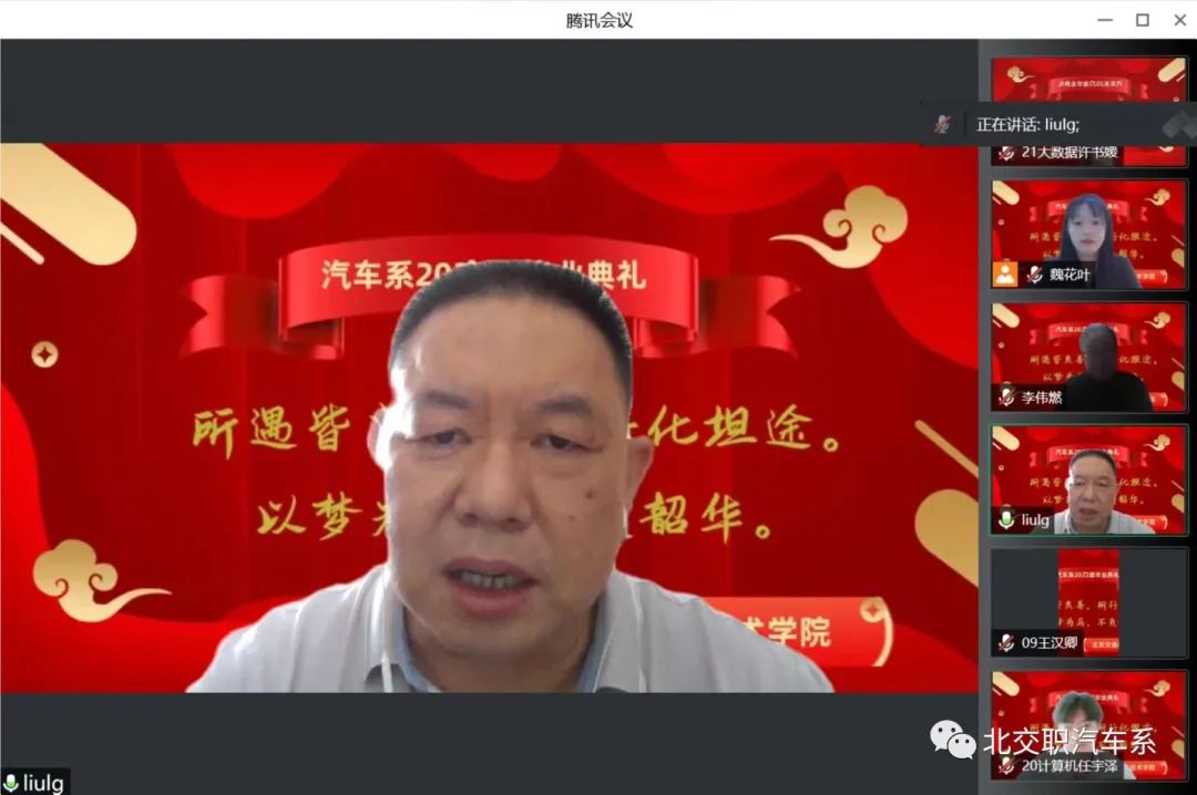 青春无悔,岁月为歌,又是一年盛夏好风景。毕业离别,情谊长存,得遇师友,深感荣幸。在这个因疫情而特殊的毕业季,7月2日上午十点,beat365vip官网登录入口汽车系2022届毕业生 “云”毕业典礼隆重举行。此次参会人员有汽车系主任刘连光老师,汽车系党支部书记李伟燃老师,汽车系班主任黄亚楠老师,汽车系计算机教研室主任姜丹老师,汽车系2019级毕业生及汽车系全体在校学生,共聚“云端”,参加了本次仪式。毕业典礼由我系党支部书记李伟燃老师主持。