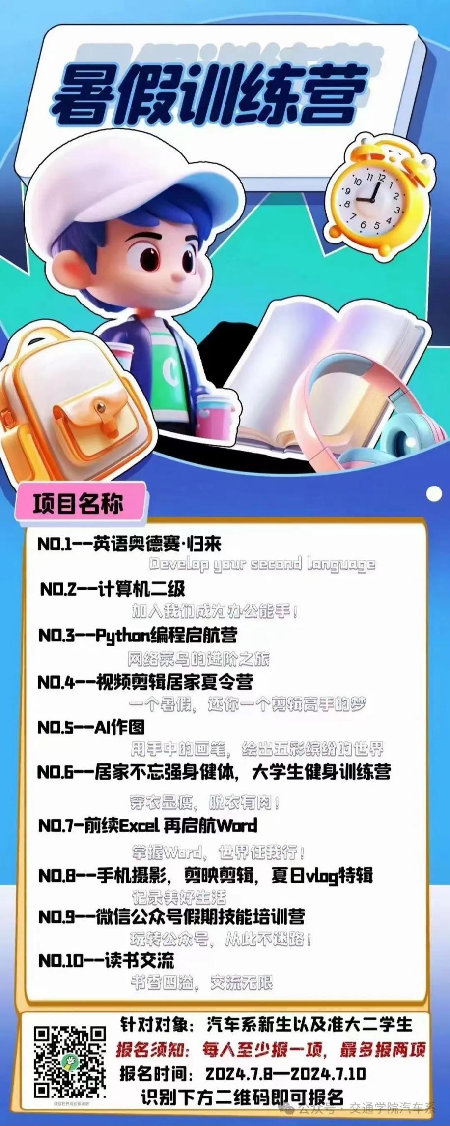 每一个训练营都以其独特的魅力和丰富的课程内容吸引了众多同学的关注。这个夏天,让我们期待这些训练营能够成为同学们成长的加速器,助力他们在各自领域取得更加优异的成绩。