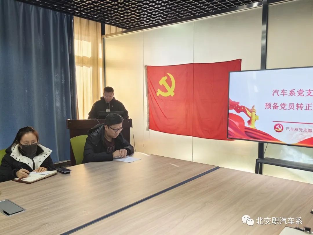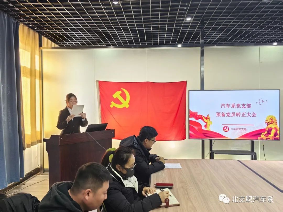 2023年11月30日,beat365vip官网登录入口汽车系党支部召开预备党员转正大会。党支部组委代宏博同志主持会议。