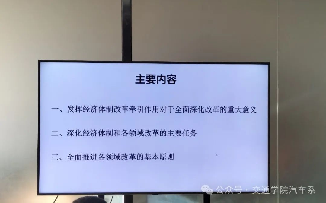 为深入学习贯彻党的二十届三中全会精神,深刻领会“以经济体制改革为牵引”的核心要义。2024年12月5日,汽车系党支部在教一楼402开展“发挥经济体制改革牵引作用,全面推进各领域改革”主题党日学习活动。