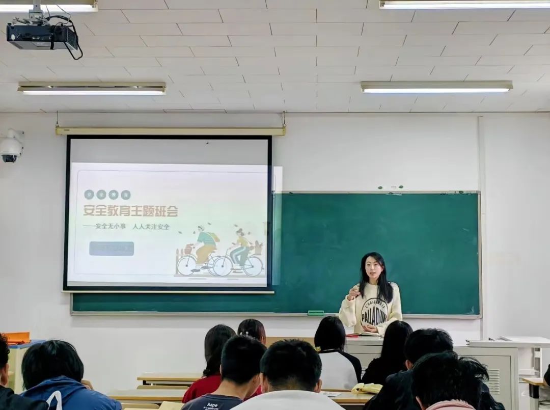 4月28日,管理系高雪源老师和刘睿老师为同学们开展了五一假期安全教育班会,分别就交通安全、食品安全、消防安全、财产安全、防溺水防踩踏等展开讲解,提高学生安全意识。