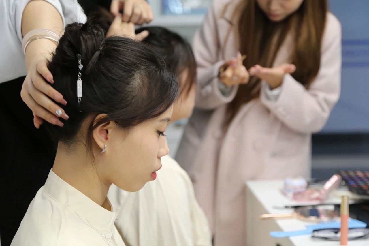 他们凭借着自己的美妆技巧和创意,为每一位合唱团成员打造契合舞台的妆容。从发声、歌曲细节,到队形与舞台表现力,大家反复打磨以求完美,齐心协力为比赛做足了准备。