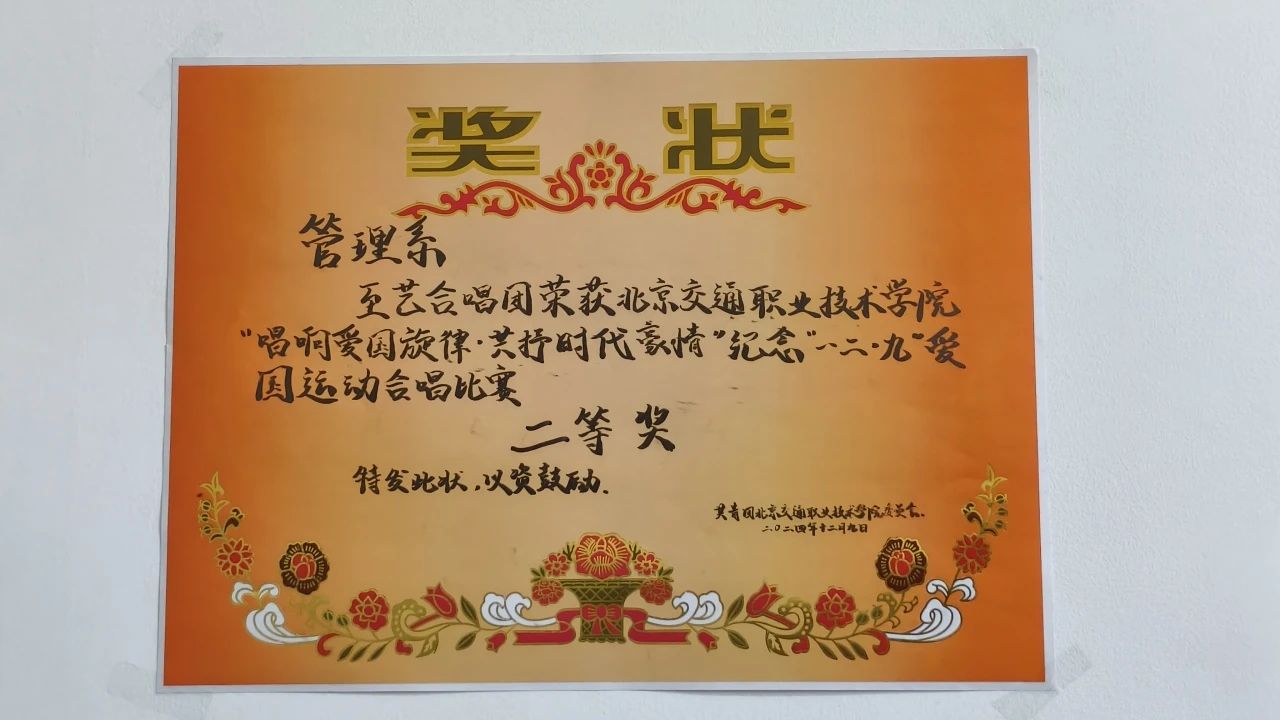 《绒花》表演时,古典舞优雅开场,舞者身姿婀娜,舞步轻盈。舞毕,同学们歌声缓缓而起,曲声悠扬,将爱国情怀丝丝融入。他们表情专注,唱舞配合默契,动作整齐,收获台下阵阵掌声。最终管理系荣获比赛二等奖,获得优异成绩。