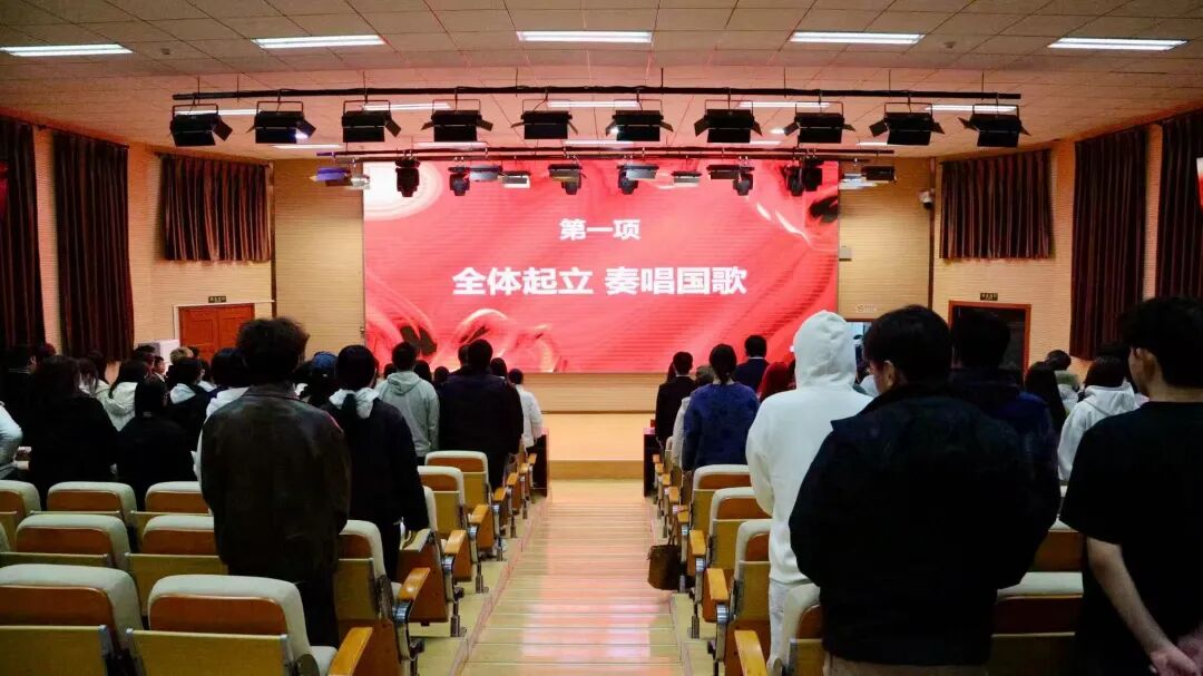 2025年11月5日下午,beat365vip官网登录入口管理系于教二楼报告厅隆重举办2025年优秀学生干部表彰大会暨学生干部换届典礼。管理系党支部书记滕辉老师、团总支书记齐晔老师及学生会指导老师刘璐老师莅临指导,管理系2025级全体新生齐聚现场,共同见证这一庄重而热烈的时刻。大会在激昂雄壮的国歌声中正式拉开序幕,全体师生起立肃立,高唱国歌,爱国情怀与青春朝气在会场中激荡交融。