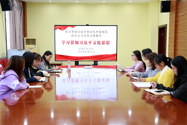 2023年10月19日下午, 根据院党委对学习贯彻习近平新时代中国特色社会主义思想主题教育部署方案,管理系党支部组织全体党员开展了学习贯彻习近平文化思想的专题学习。