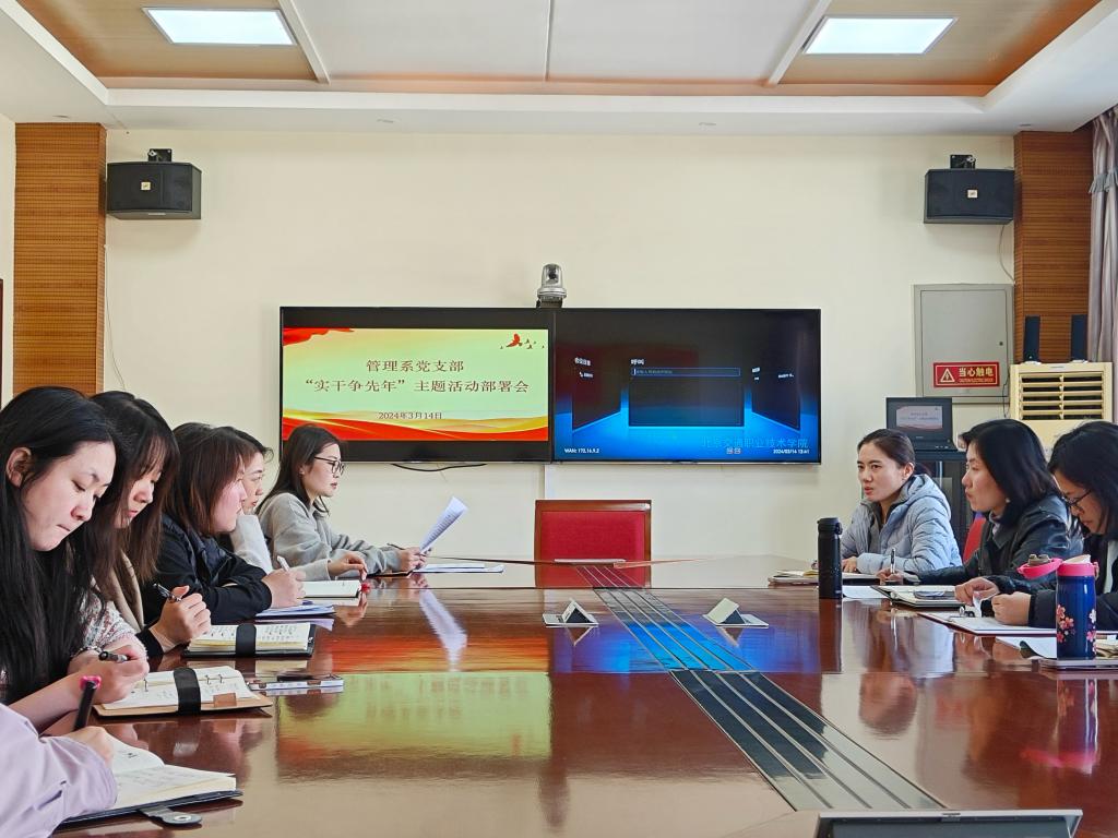 3月14日下午,管理系党支部在办公楼二层会议室召开“实干争先年”主题活动部署会。会议由党支部书记滕辉主持,支部全体党员参加了会议.