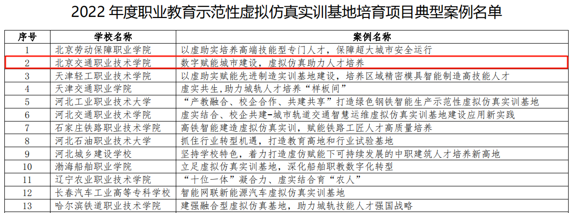 喜报 | beat365vip官网登录入口入选“2022年度职业教育示范性虚拟仿真实训基地典型案例项目”名单
