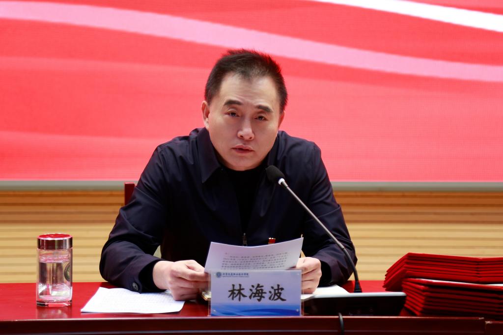 学院党委书记、院长林海波从八个方面总结了学院2024年取得的喜人成绩。一是初心领航,全面从严治党走深走实;二是凝心聚力,40周年办学成果展完美收官;三是精研善教,教学成效硕果丰盈;四是笃行致远,学生管理工作精细到位;五是匠心筑梦,招生就业稳中向好;六是协同共进,校企合作深度融合;七是精管善为,服务保障坚实有力;八是创新驱动,助力区域经济发展提质向新。对于学院2025年全年工作,他从五个方面作出规划部署: