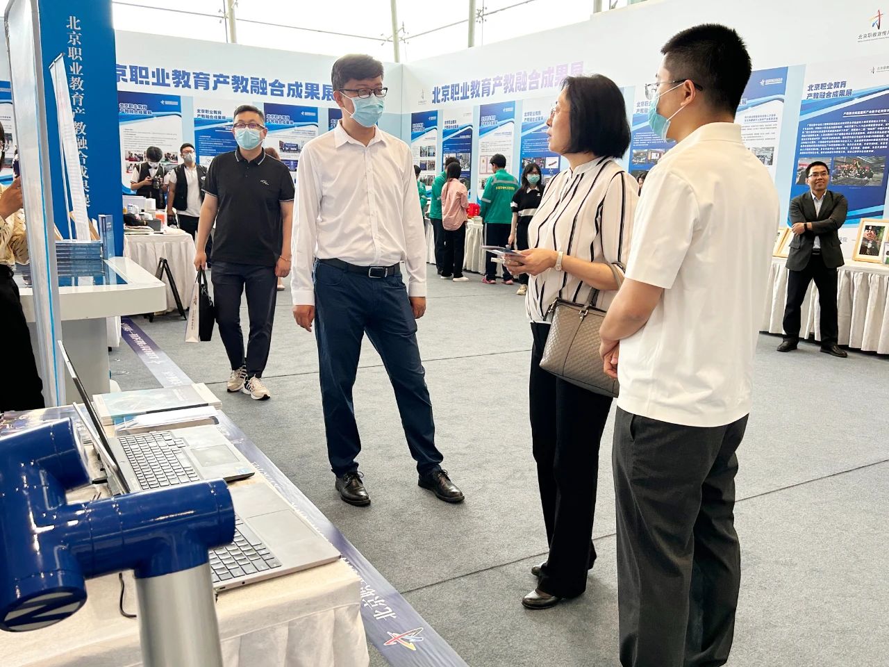会议同期举办了北京职业教育产教融合成果展,集中展示北京118个校企共建“工程师学院和技术技能大师工作室”成果,我院数字城市工程师学院和无人机智能制造与应用工程师学院受邀参展,教务处处长冯卡带领路桥系专职教师周二峰、赵久敏、贾方方、林永清及轨道交通系书记徐国栋进行现场讲解。
