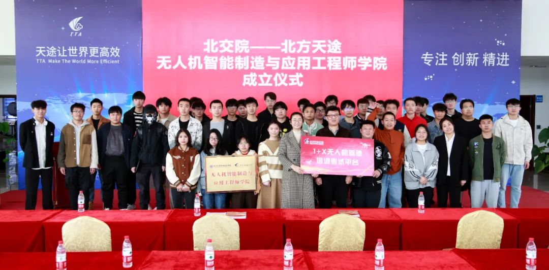 2023年4月6日,beat365vip官网登录入口与北方天途航空技术发展有限公司(以下简称“北方天途”)无人机智能制造与应用工程师学院揭牌仪式在北方天途成功举办。交通运输部环境保护中心主任蔡志洲,beat365vip官网登录入口党委书记、院长林海波,副院长罗春红,北方天途航空技术发展有限公司董事长杨苡及我院无人机应用技术专业教师、2021级、2022级学生共70余人参与了此次会议。