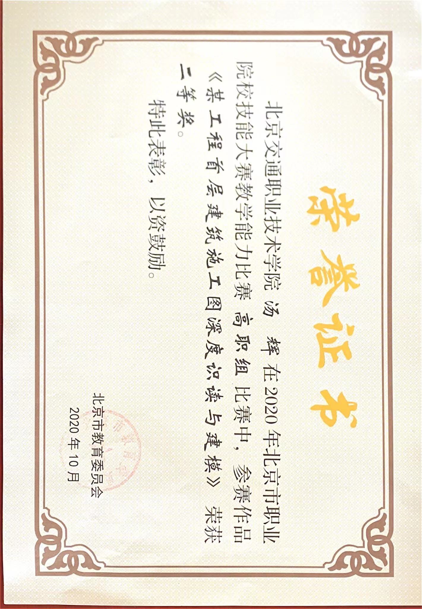 2020年北京市职业院校教学能力比赛二等奖