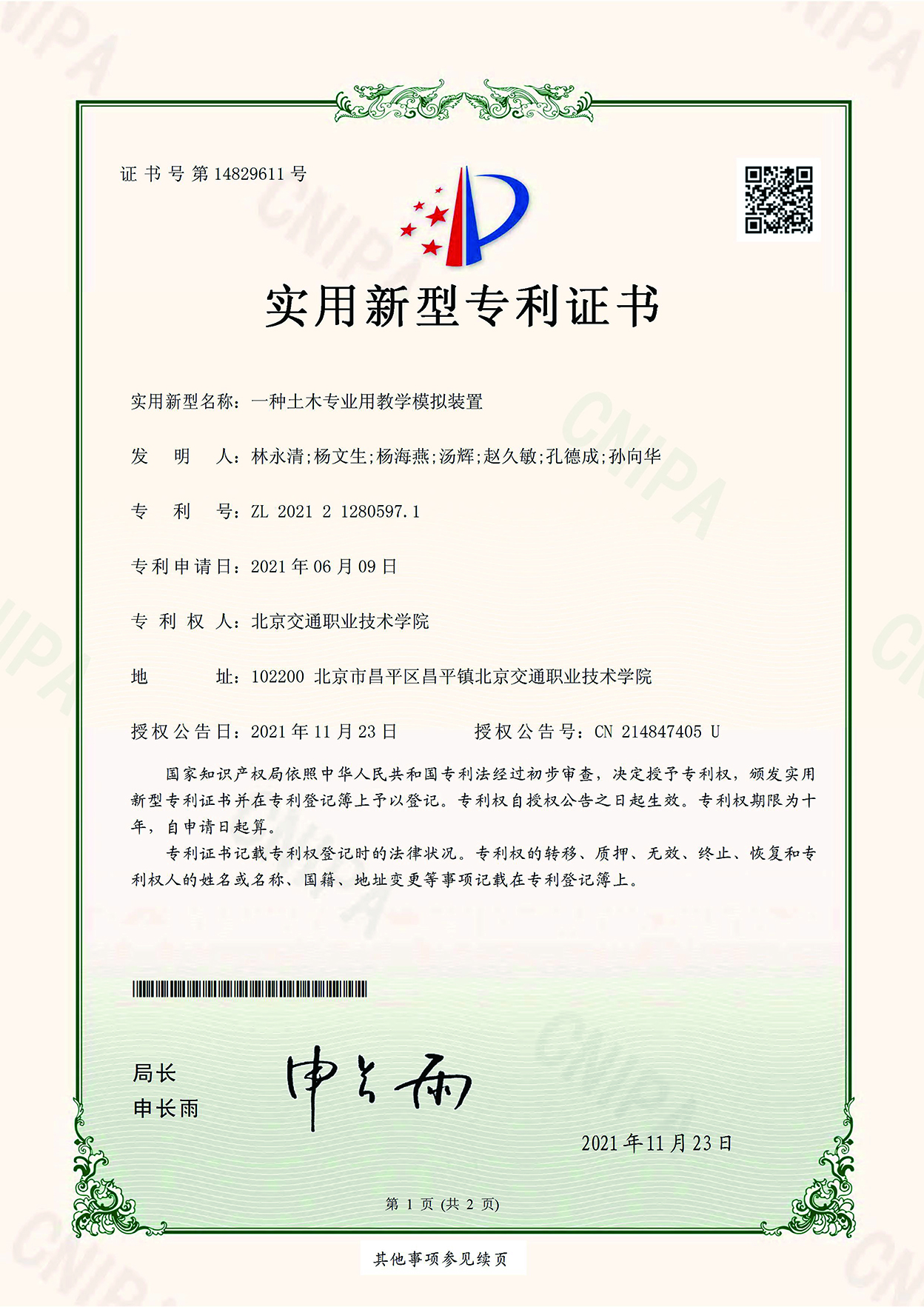 专利证书